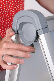 Das Sicherheits-Klappsystem sorgt für einfache Handhabung beim Auf- und Abbau. Aus robustem Aluminium gefertigt und mit Metallrückwänden sowie Klapprahmen ausgestattet, überzeugt es durch Stabilität und Flexibilität beim Plakatwechsel. Das doppelseitige Topsschild ist nahtlos integriert und bringt Ihre Botschaft direkt auf den Punkt - für maximale Aufmerksamkeit von Anfang an!Gewinnen Sie Laufkundschaft mit dem Kundenstopper "Standard". Präsentieren Sie Ihre Angebote mit brillanten Vollfarbdrucken und wechseln Sie Inhalte im Handumdrehen dank praktischer Klapprahmen. Ob drinnen oder draußen - das 32 mm 'Modell trotzt jedem Wetter.